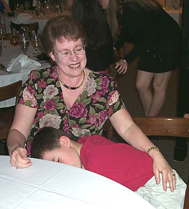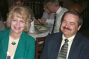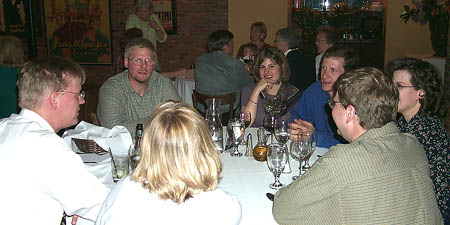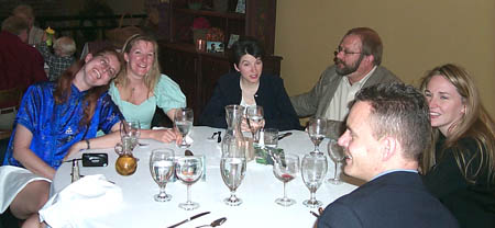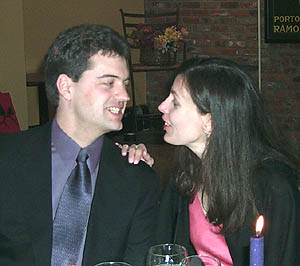 Friday, April 20, 2001: We finally get to the reason for this whole trip... the wedding of Kim's cousin (on both sides of the family), Barry, and his fiancée, Terri. The groom's parents gave a lovely rehearsal dinner for the couple at an Italian restaurant in Denver's "LoDo" (Lower Downtown.) |