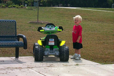 the limits of his self-restraint with the neighbor boy's Power Wheels.