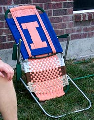 One of our poor Illini lawn chairs finally succumbed to the Texas heat and sun... the plastic armrests that were holding the front and back together broke in half! |