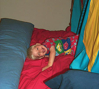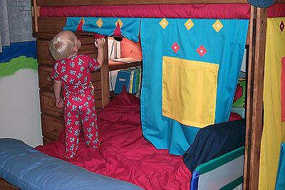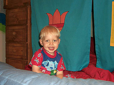 D. made Matthew a nifty tent for his bed to match the rest of his room.