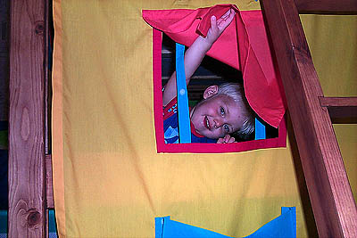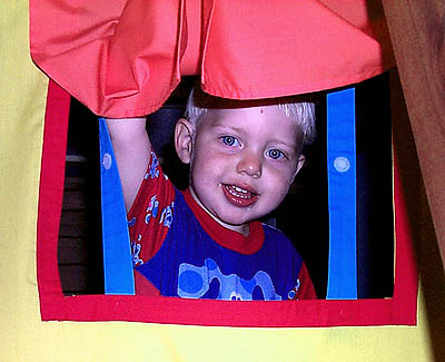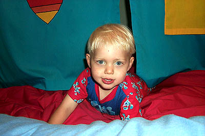 has a blast diving in and out of the tent.