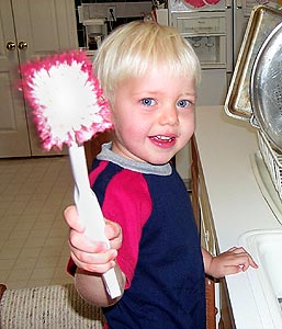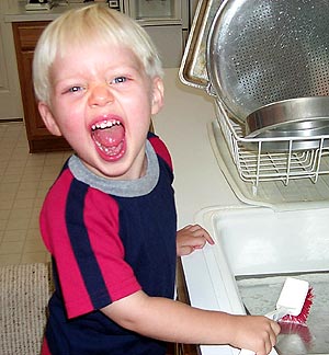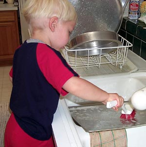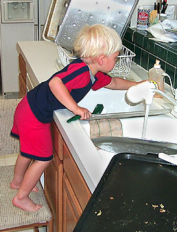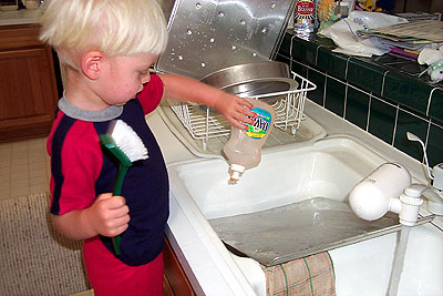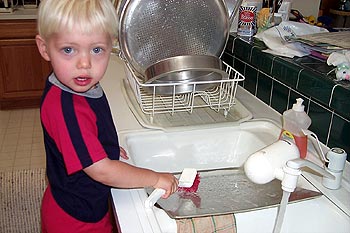 Matthew discovered this month that helping Mommy scrub the pans is LOTS of FUN!