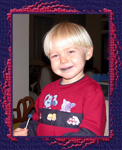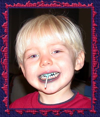 Matthew shows off the added fun-quotient of eating a blue lollipop!
