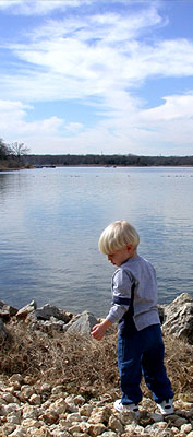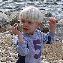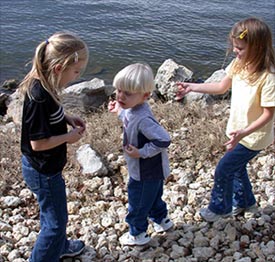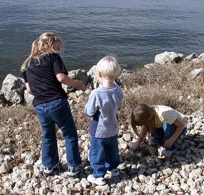 Nicole and Rachel help Matthew select the best rocks to pitch into the lake. |