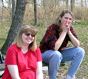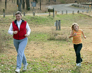 Mommy and Aunt Susie relax while Aunt Jill and Amanda have a little race. |
