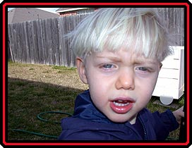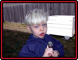 It didn't take long for the snow to disappear, and the normal Texas weather returned. While it wasn't quite warm enough to play in the water, that didn't stop Matthew from having a great time playing with the garden hose in the backyard. 2-23-02