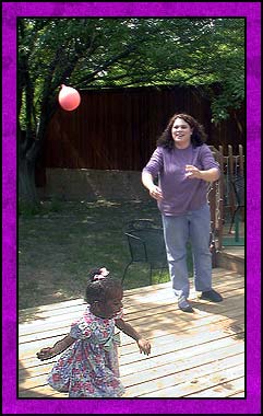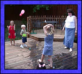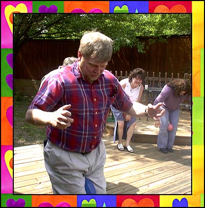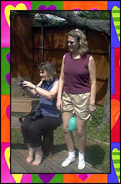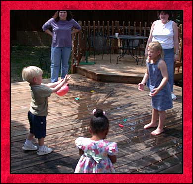 Our hosts did a wonderful job planning a lot of games to keep us all entertained. This one, which I was thankfully allowed to skip ;-), was in reference to breaking your water. The participants raced from one end of the deck to the other with a water balloon between their knees. |