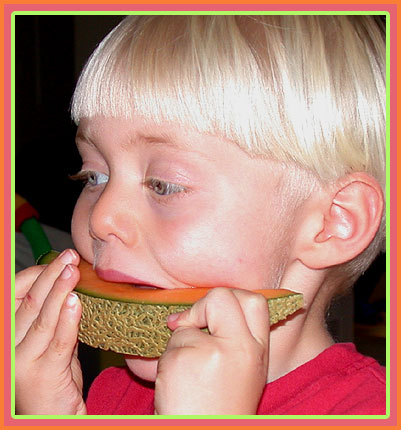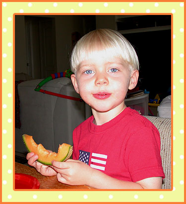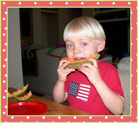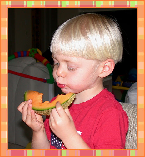 Matthew really enjoyed our first cantaloupe of the season. He ate about a quarter of the melon in one sitting! 5-10-02