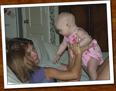 Kaylee and Aunt Susie rub noses while Matthew, Amanda, and Nicole do some serious game playing. |