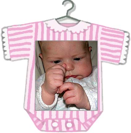 Just some assorted photos from Kaylee's first couple of months. :-) Having a bottle right after we got home from the hospital. Kaylee gets her whole body into it, including lifting her feet. 5-1-02