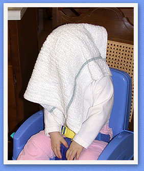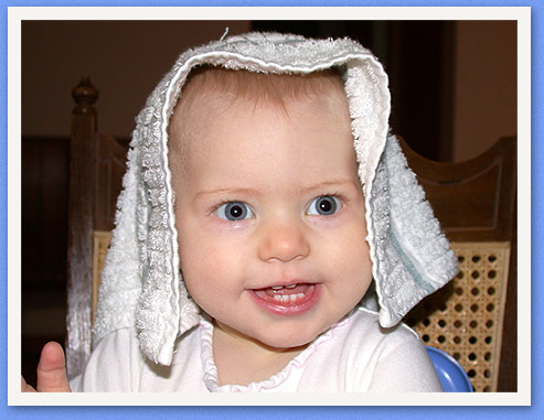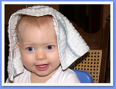 | 3. Kaylee pulls towel off with great excitement, usually accompanied by a large grin. | ||||||||||||||||||