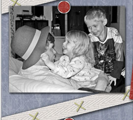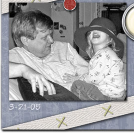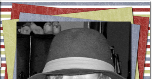 Credits: Composition based on sketch by AmyK at RAKScraps. Papers, twill, brads: Dog Lover Kit - Diane Critelli (SBB). Ribbon knot: Holly McCaig. Alphas:: "hat": Happy Hour - Holly McCaig (TheDigichick). "c": Distressed Stencil - Maya (ScrapbookGraphics). "h": Glory kit - Tanya Todd-Krasen (SBB). "e" (recolored): Rebecca DiGrazio. "c": Gold Alpha - Peggy Brutcher (A Digi Memory). "k": Scrabble (Alphadoodles CD) - Maya (ScrapbookGraphics).