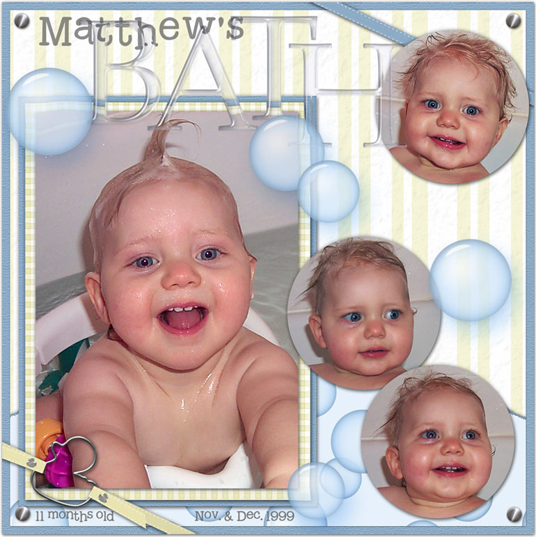 Credits: "Bath Time" by Ginger Thibodeau at Scrap Outside the Box. Clear Acrylic Alpha by Lyndsay Riches.